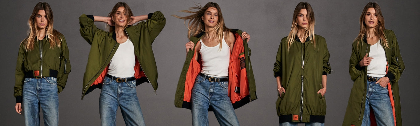 When it comes to stylish, durable and absolutely iconic blouson jackets for Women , there is no way around Bombers Original . These legendary jackets not only combine outstanding comfort, but also make a strong fashion statement. The recognition value of Bombers Original bomber jackets is unmistakable - the striking orange lining and the characteristic sleeve pocket with zipper can be found in almost every model and are reminiscent of their origins as legendary US Air Force pilot jackets. The features that were indispensable for US Navy and Air Force pilots are still a central element of the design today. With its simple look, quilted lining, zipped pocket on the sleeve and ribbed cuffs on the collar, sleeves and waist, the bomber jacket remains a timeless classic that always sets new accents.
