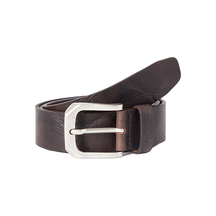 A genuine leather belt is a timeless classic and a must-have in any closet. Originally used to hold trousers in place, leather belts are now a status symbol for the fashion consciousness of Men. Even simple outfits such as jeans and a T-shirt can be given a personal touch with a leather belt. Simply tuck some of your top into the front of your trousers so that the belt buckle is clearly visible and round off your look by choosing the right shoes. Our black belts from Wrangler are true all-rounders and let you shine in the best light. Our brown leather belts from Lee and W rangler go perfectly with light colors. With beige chinos and brown shoes, paired with a white T-shirt, it's the ideal look for a summer visit to the beer garden.