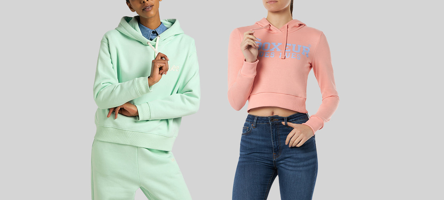 The classic monochrome sweatshirt with or without a hood is a timeless basic and deserves a place in every closet. Other attractive and unusual pieces such as cropped sweaters, oversized sweaters and sweaters with prints help you to make fashion statements. As a woman, you can create and show off your individual style here. Combine an oversized sweatshirt in an eye-catching color with tight jeans and trainers for a trendy casual look. An eye-catching hoodie or sweater with a print motif combined with hot pants and high heels is a real eye-catcher in a bar or club. The athleisure look is also particularly popular. Here, comfortable leggings, yoga pants, hoodies and trainers are combined to create a casual and super-comfortable leisure outfit. There are no limits to your creativity!